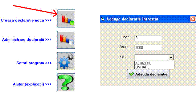 In ambele cazuri trebuie sa se aleaga luna, anul si felul declaratiei: Achizitie sau Livrare