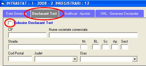 Aceasta optiune trebuie folosita doar in cazul intocmirii declaratiei Intrastat de catre declarantii terti. (firme care depun declaratie Intrastat in numele altor societati comerciale).