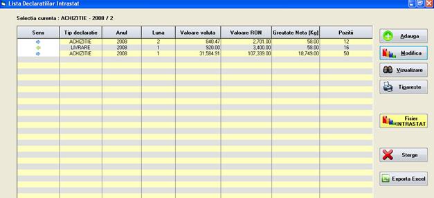 Lista declaratiilor Intrastat.