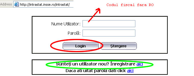 Adresa Internet: http://intrastat.insse.ro/intrastat/ parola: Codul fiscal fara RO